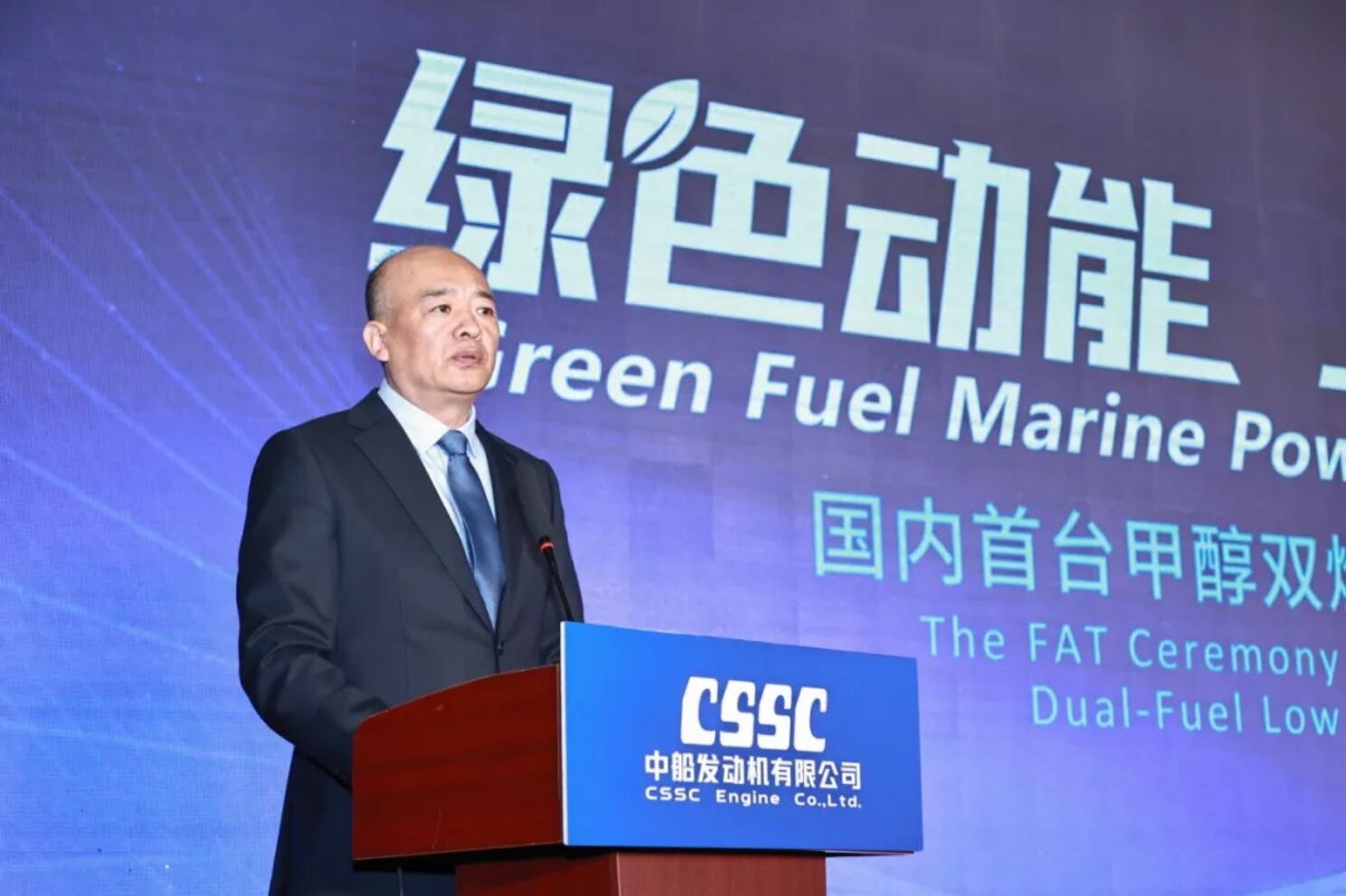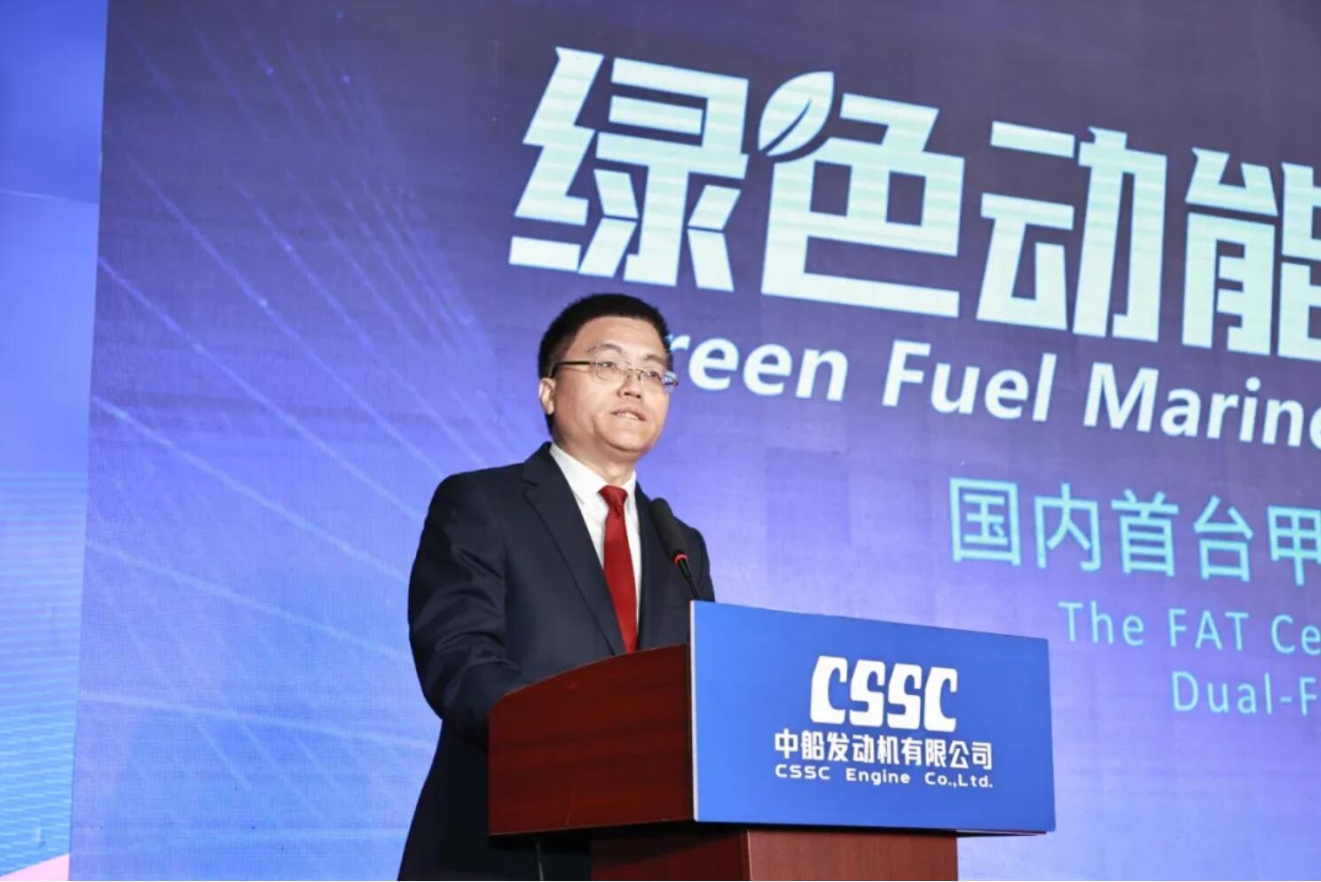 中船發(fā)動(dòng)機(jī)黨委書記、董事長付向昭熱情洋溢的歡迎辭拉開了交機(jī)儀式的序幕,在中船發(fā)動(dòng)機(jī)黨委副書記、總經(jīng)理?xiàng)钚?qiáng)的主持下,集團(tuán)主管部門領(lǐng)導(dǎo)、BV船級(jí)社和船廠代表分別致辭,中國船舶集團(tuán)綜合技術(shù)經(jīng)濟(jì)研究院副院長包張靜作《綠色船用動(dòng)力發(fā)展趨勢與市場機(jī)遇》報(bào)告,中船發(fā)動(dòng)機(jī)黨委委員、副總經(jīng)理陳義仿介紹了中船發(fā)動(dòng)機(jī)低碳零碳發(fā)動(dòng)機(jī)布局及國內(nèi)首臺(tái)甲醇雙燃料低速機(jī)的研制過程。隨著推桿儀式的成功完成,整個(gè)交機(jī)儀式被推向了高潮,現(xiàn)場氣氛熱烈高漲,與會(huì)嘉賓一齊鼓掌,慶祝國內(nèi)首臺(tái)甲醇雙燃料低速機(jī)成功交驗(yàn)!