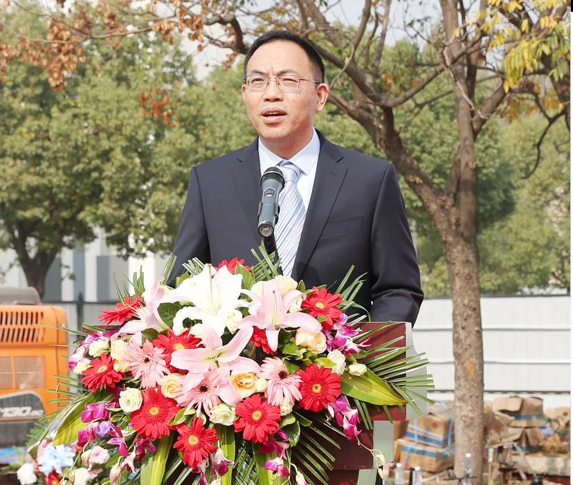 在全體參建人員熱烈的掌聲中,出席活動(dòng)的領(lǐng)導(dǎo)同擎金鍬,為項(xiàng)目開工揚(yáng)土培基,向協(xié)同研發(fā)中心工程開工表示祝賀。