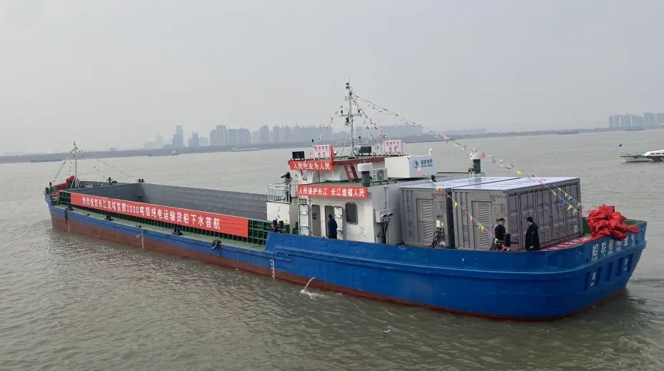 “船聯(lián)1號”由國網(wǎng)江蘇省電力有限公司聯(lián)合相關(guān)部門和企業(yè)共同打造,是長江流域最大載重噸位的電動貨船,將電能作為整艘船的唯一能源,實(shí)現(xiàn)零排放、低噪音、無污染。
