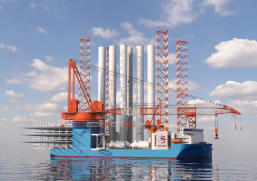 三是作業(yè)能力強(qiáng)。該平臺(tái)建成后主要用于16MW 及以上機(jī)組設(shè)備安裝,配置4個(gè)三角形桁架式樁腿(樁腿長(zhǎng)度125.85米)、4套齒輪齒條式升降系統(tǒng)和沖樁系統(tǒng),單樁額定升降能力約9000噸。該平臺(tái)相較一般風(fēng)電安裝平臺(tái),作業(yè)能力更強(qiáng),作業(yè)范圍更廣,并且可以輕松應(yīng)對(duì)更加惡劣的施工環(huán)境,是滿足未來深遠(yuǎn)海、大容量、一體化施工作業(yè)要求的海上風(fēng)電施工裝備。