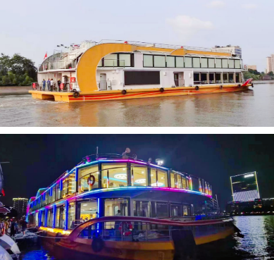該船是為廣州珠江游打造的豪華雙體游覽船,全鋼制結(jié)構(gòu),配置3015kWh純鋰電池驅(qū)動,Z形全回轉(zhuǎn)舵槳推進(jìn),設(shè)計(jì)航速為18.5km/h。船體上建采用大面積玻璃幕墻,具有開闊的觀光視野,可提供江景游覽、娛樂餐飲、會議招待等服務(wù)。全船振動噪音指標(biāo)優(yōu)良,設(shè)計(jì)建造融入了綠色環(huán)保理念,是取得中國船級社頒發(fā)“綠色船舶-3”入級符號附加標(biāo)志的新能源動力船舶。