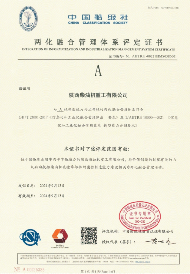 陜柴作為工信部兩化融合管理體系貫標(biāo)試點(diǎn)企業(yè),于2019年8月正式啟動(dòng)兩化融合管理體系貫標(biāo)工作,并于2021年9月通過評(píng)定機(jī)構(gòu)審核取得評(píng)定證書,2022年7月通過評(píng)定機(jī)構(gòu)監(jiān)督審核,目前體系正常有效運(yùn)行。