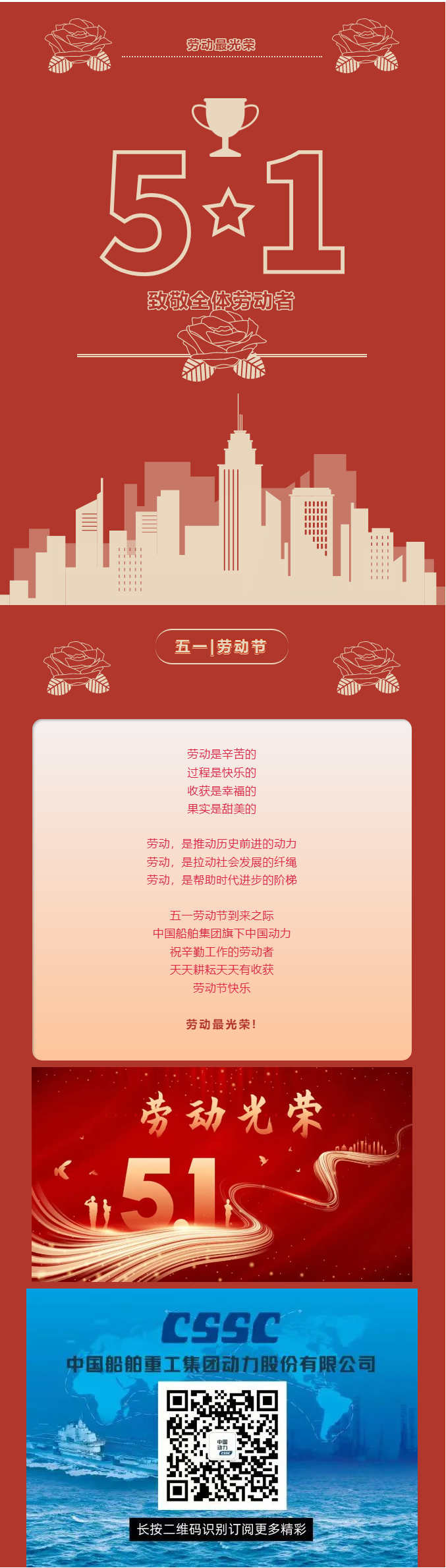 中國(guó)船舶重工集團(tuán)動(dòng)力股份有限公司祝您五一勞動(dòng)節(jié)快樂(lè)!