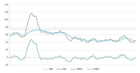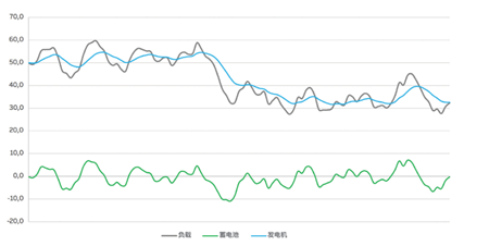 圖1:蓄電池承受快速負載波動,發(fā)動機提供基本負載