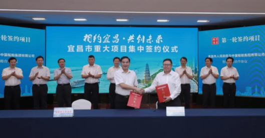 7月28日,中國(guó)船舶集團(tuán)有限公司黨組成員、副總經(jīng)理錢建平代表中國(guó)船舶集團(tuán)與宜昌市政府簽訂了《中國(guó)船舶(宜昌)海洋裝備科技園項(xiàng)目框架合作協(xié)議》。宜昌市委書記周霽、市長(zhǎng)張家勝參加簽約活動(dòng)。