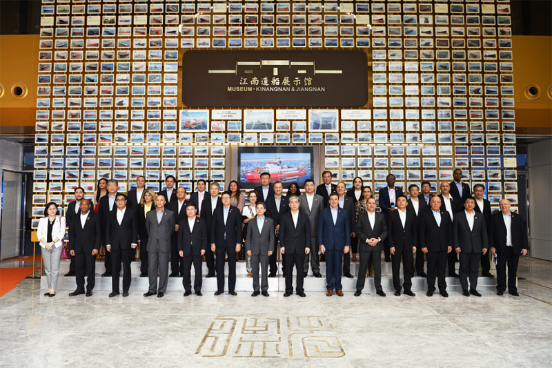 使節(jié)代表團(tuán)先后參觀了中國船舶集團(tuán)旗下滬東中華、江南造船,聽取了兩家企業(yè)重點(diǎn)產(chǎn)品、經(jīng)營生產(chǎn)發(fā)展的總體介紹,并赴船塢、碼頭實(shí)地了解了在建的目前全球最大雙燃料23000TEU集裝箱船以及其他高技術(shù)、高附加值船舶建造情況。
