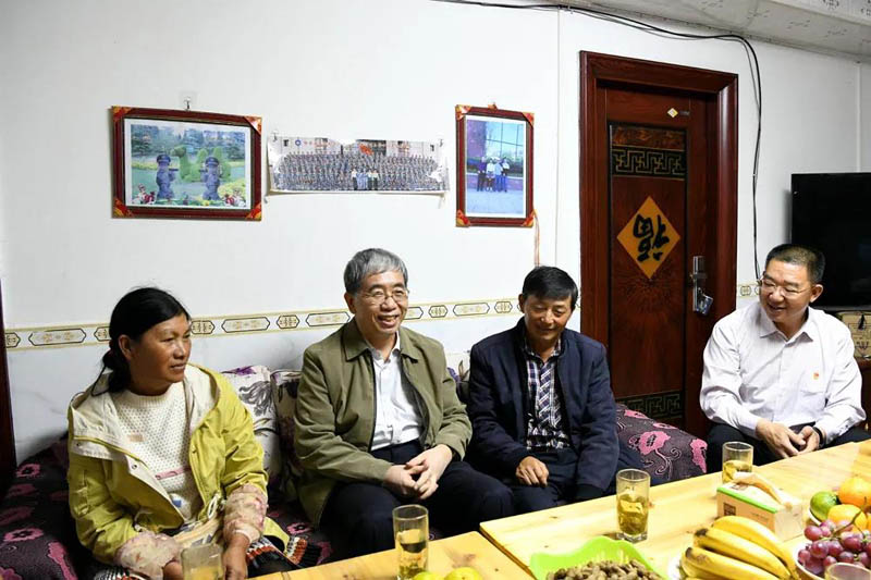 雷凡培一行深入樹皮鄉(xiāng)小塘子村檢查危房改造和人居環(huán)境提升項(xiàng)目情況,并慰問有關(guān)建檔立卡戶,鼓勵(lì)村民在黨的領(lǐng)導(dǎo)下追求和創(chuàng)造美好生活;察看了中國船舶小矣堵希望小學(xué)學(xué)生學(xué)習(xí)和生活環(huán)境,看望了集團(tuán)公司“愛在深藍(lán)”青年志愿服務(wù)隊(duì),參觀了國防教育展廳,勉勵(lì)孩子們堅(jiān)定理想、勤奮學(xué)習(xí),報(bào)效祖國、回饋社會(huì),為實(shí)現(xiàn)強(qiáng)國夢強(qiáng)軍夢貢獻(xiàn)智慧和力量;了解了丘北一中“中國船舶樓”建設(shè)情況,要求全力抓好質(zhì)量、安全和進(jìn)度,確保按期投入使用;調(diào)研了集團(tuán)公司產(chǎn)業(yè)扶貧基金支持和消費(fèi)扶貧帶動(dòng)的玫香鮮花生物科技公司生產(chǎn)經(jīng)營情況,鼓勵(lì)再接再厲,打造品牌,持續(xù)發(fā)展;前往昆船公司智慧停車場了解運(yùn)營情況,要求抓緊推動(dòng)后續(xù)項(xiàng)目落地,實(shí)現(xiàn)互利共贏發(fā)展。