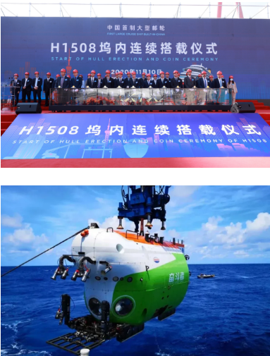2020年,中國船舶集團(tuán)在科技創(chuàng)新方面取得重要突破,核心競爭力持續(xù)提升?!皧^斗者”號載人潛水器在馬里亞納海溝10909米處成功坐底,實現(xiàn)了中國載人深潛首次萬米突破;船用低速機(jī)工程原理樣機(jī)、工程樣機(jī)、關(guān)重件樣件試驗驗證取得新成果;與廣東省簽訂船舶LNG動力改造項目合作框架協(xié)議。在持續(xù)推進(jìn)自主可控工程與關(guān)鍵核心技術(shù)攻關(guān)方面,中國船舶集團(tuán)承擔(dān)多項攻關(guān)任務(wù)實現(xiàn)關(guān)鍵核心技術(shù)突破。在軍民品科研開發(fā)、先進(jìn)制造技術(shù)研發(fā)應(yīng)用、科技創(chuàng)新基礎(chǔ)夯實方面,中國船舶集團(tuán)也開展了大量工作,并取得顯著成效。