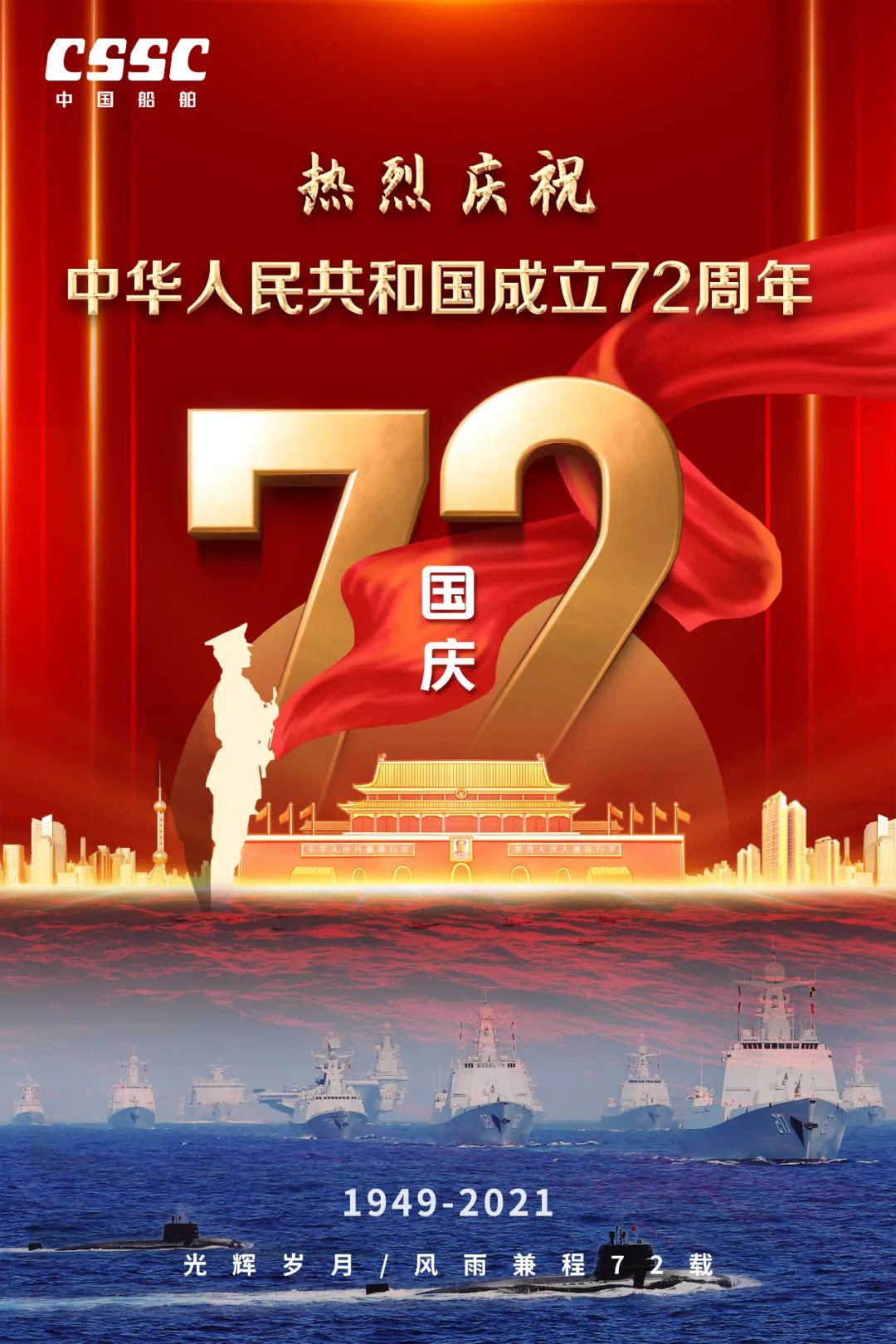 祖國,是每個國人冀望的期許!祖國,是船舶人心底最動聽的旋律!72年來,新中國經(jīng)歷了風(fēng)風(fēng)雨雨;72年過去,成就了盛世風(fēng)華,中國船舶六〇二院全體員工祝新中國生日快樂!