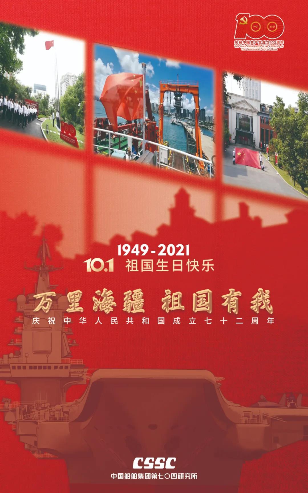 72年篳路藍(lán)縷,72年風(fēng)雨兼程,正值建黨百年之際,恰逢新中國72周年華誕,中國船舶七二六所為祖國獻(xiàn)上最真摯的祝福!祝福偉大祖國繁榮昌盛!七二六人將繼續(xù)用智慧和汗水譜寫水聲華章,用創(chuàng)新和拼搏開拓新時代新征程,為建設(shè)海洋強(qiáng)國貢獻(xiàn)磅礴力量!