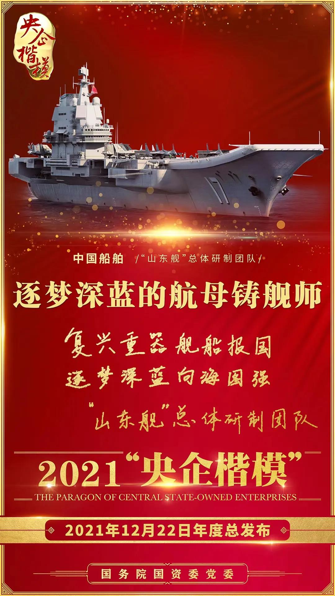 12月22日,國務(wù)院國資委黨委舉行2021年第二批“央企楷?!卑l(fā)布暨年度總發(fā)布儀式,中國船舶“山東艦”總體研制團(tuán)隊(duì)榮獲2021年“央企楷?!睒s譽(yù)稱號。繼“奮斗者”號萬米載人潛水器研發(fā)團(tuán)隊(duì)獲評2020年“央企楷?!睒s譽(yù)稱號后,中國船舶集團(tuán)再獲此殊榮。