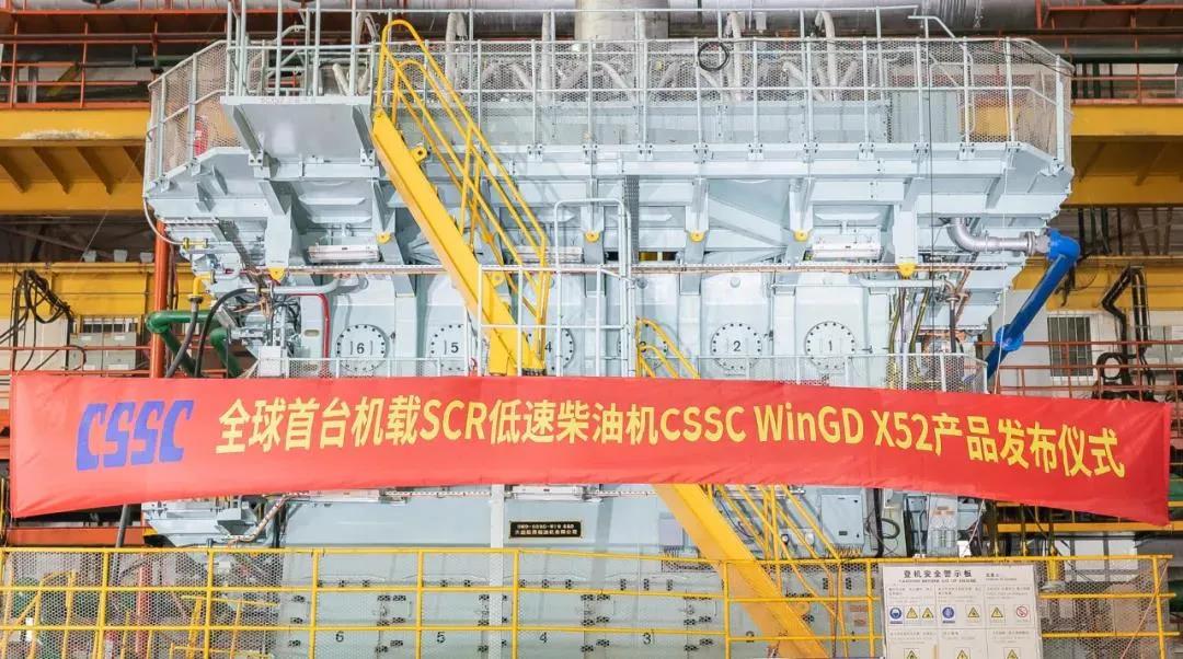 2021年7月22日,由中國(guó)船舶集團(tuán)旗下中船動(dòng)力集團(tuán)自主研發(fā)、大連船柴建造的全球首臺(tái)機(jī)載SCR(選擇性催化還原系統(tǒng))船用低速機(jī)CSSC WinGD X52正式向全球發(fā)布。