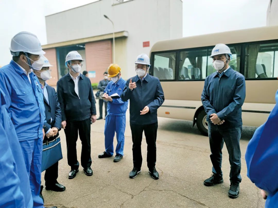 5月10日,中國(guó)船舶集團(tuán)有限公司黨組副書記、總經(jīng)理?xiàng)罱鸪傻郊瘓F(tuán)公司旗下中船動(dòng)力(集團(tuán))有限公司調(diào)研疫情防控和復(fù)工復(fù)產(chǎn)工作。中國(guó)船舶集團(tuán)黨組成員、副總經(jīng)理孫偉、盛紀(jì)綱參加調(diào)研。