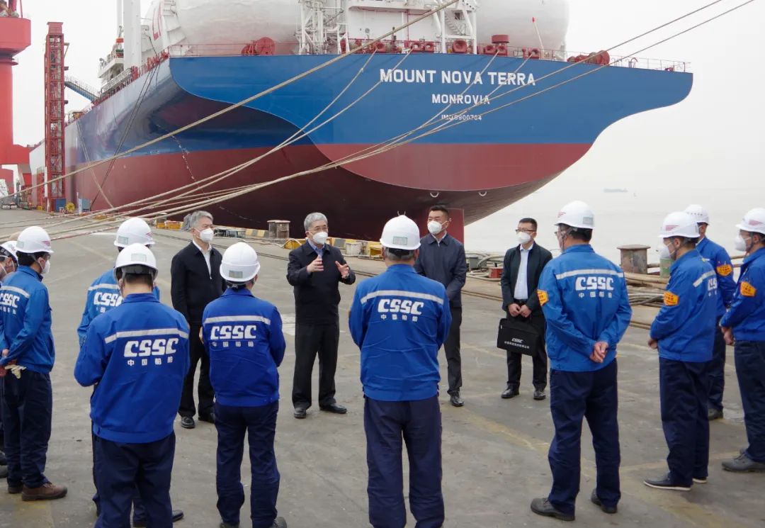 5月15日,中國船舶集團有限公司黨組書記、董事長雷凡培到集團公司旗下上海外高橋造船有限公司調(diào)研疫情防控和復(fù)工復(fù)產(chǎn)工作。中國船舶集團黨組成員、副總經(jīng)理孫偉參加調(diào)研。