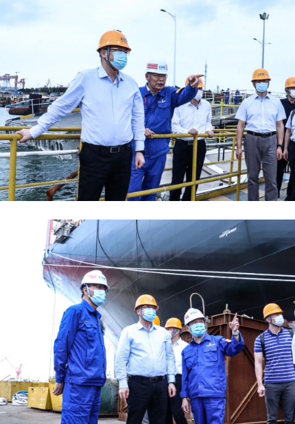9月22日,中國(guó)船舶集團(tuán)有限公司黨組副書記、總經(jīng)理?xiàng)罱鸪傻郊瘓F(tuán)公司旗下江南造船、滬東中華調(diào)研指導(dǎo)工作。楊金成聽取了江南造船、滬東中華近期安全生產(chǎn)、疫情防控、保密保衛(wèi)、信訪維穩(wěn)等工作及生產(chǎn)經(jīng)營(yíng)情況的匯報(bào),并登上兩家企業(yè)船塢碼頭查看了重點(diǎn)在建船舶進(jìn)展情況。