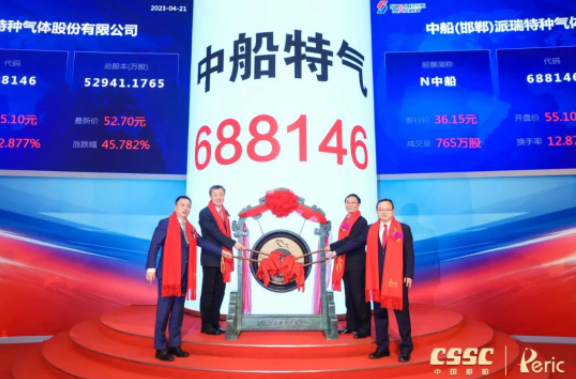 4月21日,中國(guó)船舶集團(tuán)有限公司旗下中船(邯鄲)派瑞特種氣體股份有限公司(簡(jiǎn)稱:中船特氣,證券代碼:688146)首次公開發(fā)行A股上市儀式在上海證券交易所舉行。這是中國(guó)船舶集團(tuán)旗下第12家上市公司,也是集團(tuán)公司重組后首家在科創(chuàng)板公開發(fā)行A股的上市公司。中國(guó)船舶集團(tuán)黨組書記、董事長(zhǎng)溫剛出席儀式,黨組成員、總會(huì)計(jì)師賈海英出席儀式并致辭,黨組成員、副總經(jīng)理盛紀(jì)綱出席儀式。