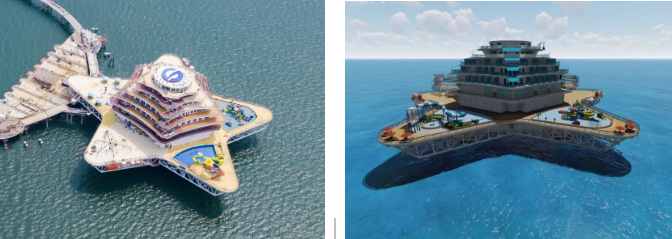 以濱海城市為依托,該方案重點(diǎn)建設(shè)需求旺盛、基礎(chǔ)好、見效快的“海洋文旅+深海養(yǎng)殖+海上風(fēng)電+海洋信息管網(wǎng)”4個要素單元,釋放旅游、養(yǎng)殖、綠色能源耦合效應(yīng)。綜合體采用模塊化設(shè)計(jì)、區(qū)域化協(xié)同部署,由濱海向深遠(yuǎn)海帶狀輻射,布局建設(shè)游輪游艇群、養(yǎng)殖文旅平臺、深海養(yǎng)殖產(chǎn)業(yè)園、分布式海上風(fēng)電場及智能微電網(wǎng)、深海移動養(yǎng)殖工廠和海洋信息管網(wǎng)等風(fēng)漁文旅結(jié)合項(xiàng)目。以郵輪游艇連接海上設(shè)施,構(gòu)建海上旅游娛樂交通網(wǎng),以中小型郵輪航線實(shí)現(xiàn)沿海城市綜合體間串聯(lián),構(gòu)建沿海城市海上旅游觀光帶,同時培育郵輪與康養(yǎng)休閑岸?;尤诤夏J?,捕捉、帶動、滿足多元化潛在消費(fèi)需求,打造風(fēng)漁文旅等一二三產(chǎn)業(yè)融合新業(yè)態(tài),形成沿海藍(lán)色海洋經(jīng)濟(jì)帶。