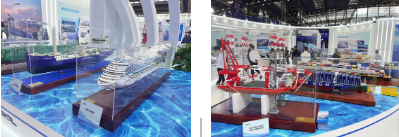 重點展示奮力摘取造船業(yè)最后一顆明珠的首制國產(chǎn)大型郵輪,以風、光、甲醇裝備等為主體的綠色船舶等高端海洋裝備、以“商業(yè)模式創(chuàng)新+創(chuàng)新技術(shù)應用”為引領(lǐng)的海洋文旅、深海養(yǎng)殖、海上風電等新興海洋經(jīng)濟裝備、踐行“服務國家戰(zhàn)略”企業(yè)使命的與自然資源部和廣東省合作項目成果等,展現(xiàn)了中國船舶集團作為世界第一造船集團的總體實力、企業(yè)使命。