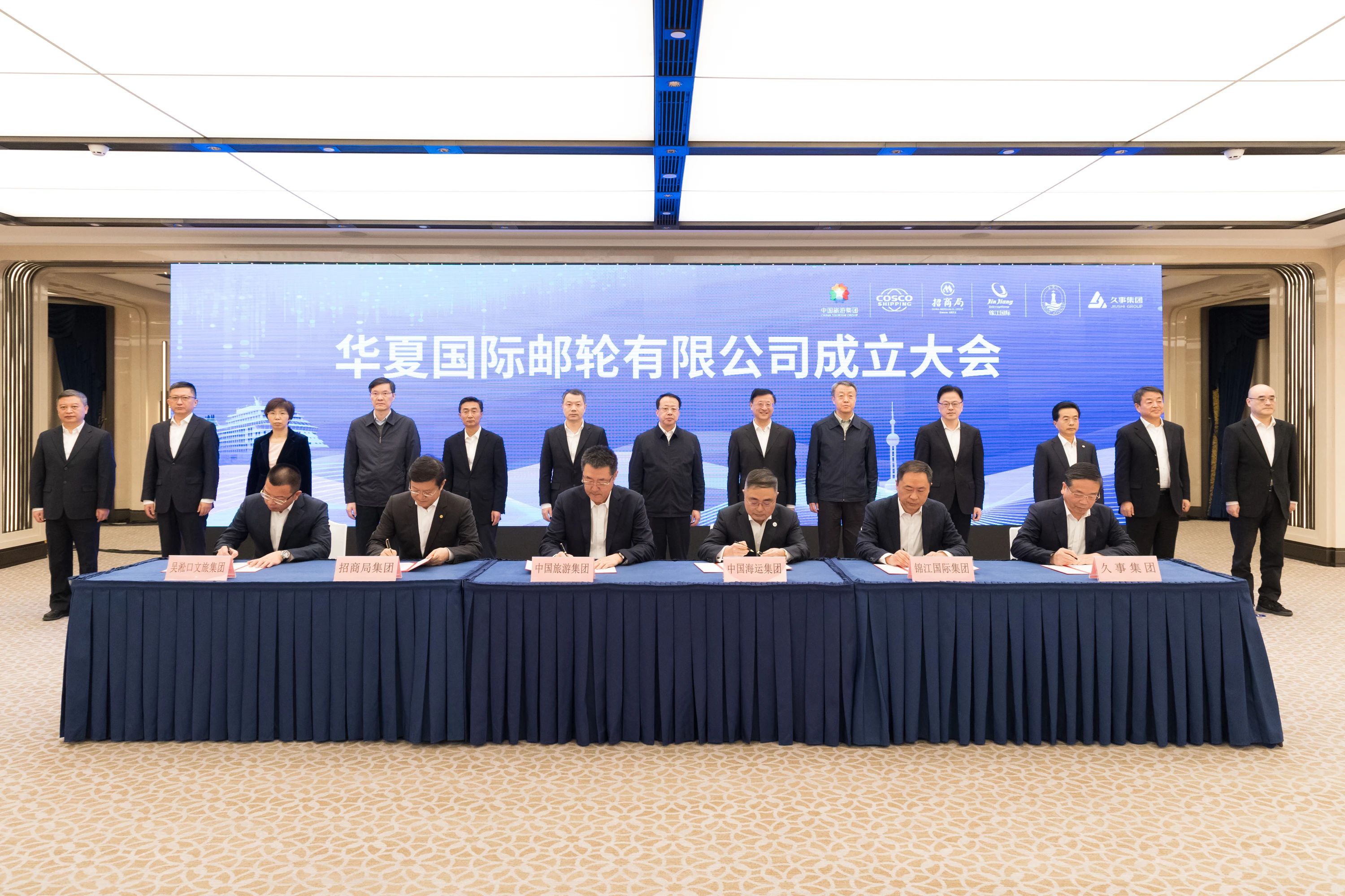成立大會(huì)上,龔正、陳寅為華夏國(guó)際郵輪有限公司揭牌。中國(guó)旅游集團(tuán)、中國(guó)遠(yuǎn)洋海運(yùn)集團(tuán)、招商局集團(tuán)、錦江國(guó)際集團(tuán)、上海久事集團(tuán)、吳淞口文旅投資集團(tuán)相關(guān)負(fù)責(zé)同志簽約。