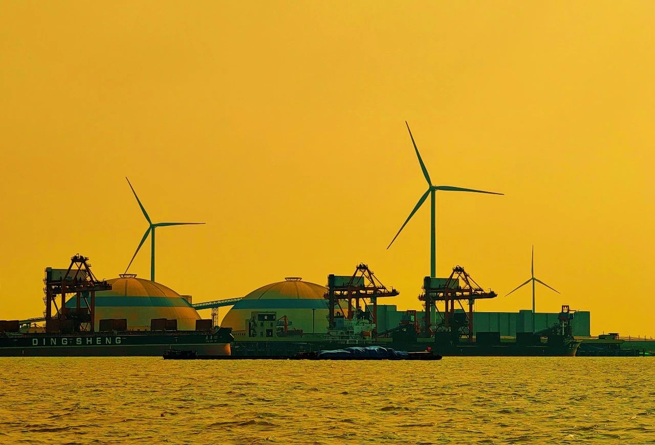 中船澄西建造的風力發(fā)電塔塔筒矗立在長江邊,為千家萬戶送去源源不斷的綠色能源。
