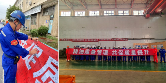 渤海造船在全公司范圍內(nèi)進行宣傳動員,開展質(zhì)量承諾簽名、質(zhì)量快問快答挑戰(zhàn)、“質(zhì)量月”主題征文、主題漫畫展、一線單位質(zhì)量找茬等多項特色活動;策劃發(fā)布《渤海造船質(zhì)量禁則40條》,制定“回頭看”實施方案,對所有工序施工現(xiàn)場、庫房實施拉網(wǎng)檢查工作,重點針對新進入員工和青年員工等開展質(zhì)量意識培訓。