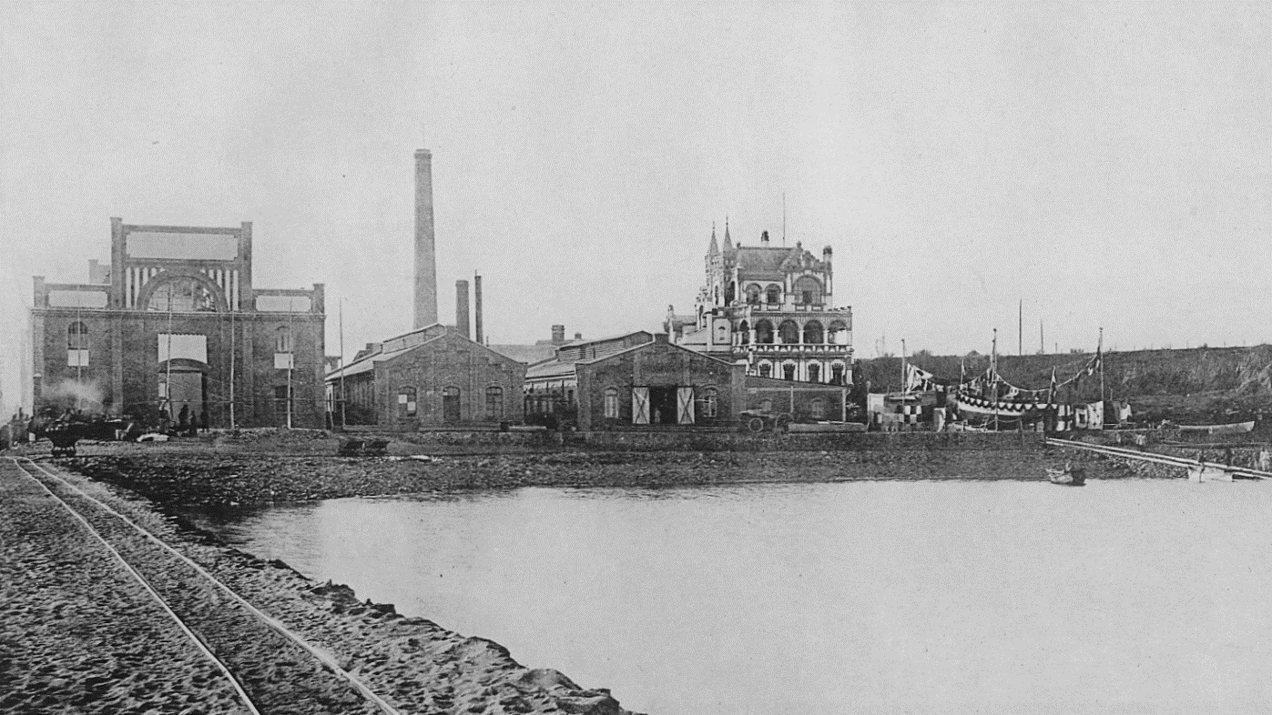 1905年青島,1905年,船廠造出了被譽(yù)為“青島之自豪”的1.6萬噸“亞洲第一大浮船塢”和“東亞細(xì)亞第一大機(jī)器”——150噸起重機(jī)。