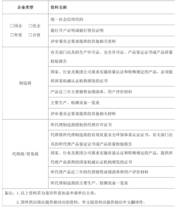 4.對于提供審核資料弄虛作假、被國家相關部門、同行業(yè)央企納入黑名單或列為不誠信人的企業(yè)及企業(yè)法人不予準入。