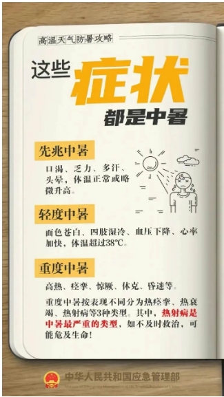 中暑是指人體在高溫、高濕度、不透風環(huán)境下,由于水和電解質(zhì)丟失過多、散熱功能障礙,導致機體核心溫度過高,引起的以中樞神經(jīng)系統(tǒng)和心血管功能障礙為主要表現(xiàn)的熱損傷性疾病。