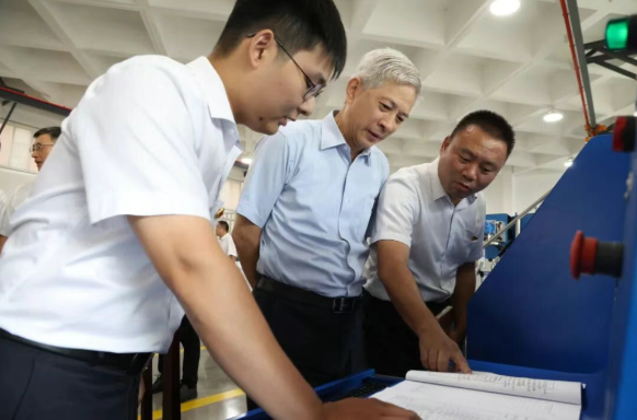 徐鵬深入科研生產(chǎn)一線,調(diào)研了相關(guān)重點車間及生產(chǎn)線,聽取了相關(guān)單位負(fù)責(zé)人關(guān)于生產(chǎn)經(jīng)營、科技創(chuàng)新、人才培養(yǎng)、戰(zhàn)略規(guī)劃、黨的建設(shè)等方面情況匯報,對相關(guān)單位改革發(fā)展取得的成績表示肯定,也指出發(fā)展存在的問題和面臨的形勢。調(diào)研期間,徐鵬還主持召開職工群眾代表座談會,詳細(xì)了解一線職工群眾急難愁盼和基層亟待解決的突出問題,并現(xiàn)場解答部分意見建議。