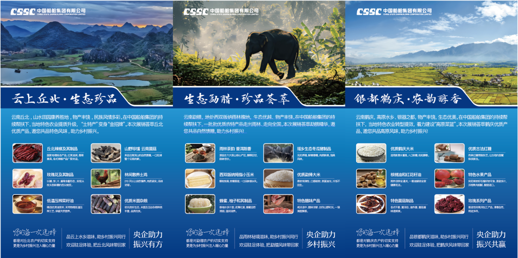 百家央企聚合力,消費(fèi)幫扶促振興。中船集團(tuán)積極響應(yīng)國(guó)家號(hào)召,自2018年起持續(xù)對(duì)云南鶴慶、丘北、勐臘三縣開展消費(fèi)幫扶,通過(guò)“以購(gòu)代扶、以銷促產(chǎn)”的有效路徑,走出了鄉(xiāng)村振興的堅(jiān)實(shí)步伐。同時(shí),中船集團(tuán)以“中船集團(tuán)電子商城”“中船·惠民優(yōu)選”線上平臺(tái)為依托,充分挖掘并推廣三個(gè)幫扶縣特色農(nóng)產(chǎn)品資源,系統(tǒng)推進(jìn)消費(fèi)幫扶工作落地落實(shí)。