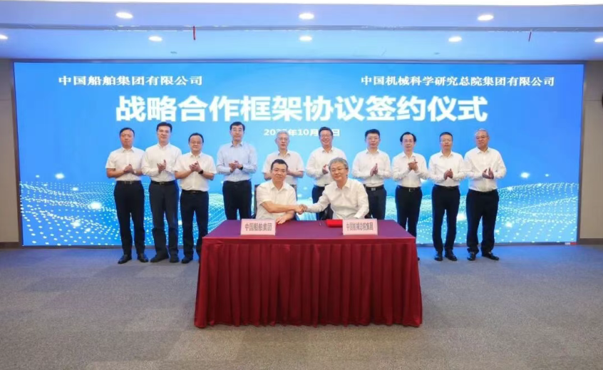 10月17日,中國船舶集團(tuán)有限公司與中國機(jī)械科學(xué)總院集團(tuán)有限公司在上海簽署戰(zhàn)略合作框架協(xié)議。中船集團(tuán)黨組書記、董事長徐鵬,中國機(jī)械總院黨委書記、董事長王德成出席簽約儀式。中船集團(tuán)黨組成員、副總經(jīng)理彭原璞,中國機(jī)械總院集團(tuán)副總經(jīng)理姜超分別代表雙方在協(xié)議上簽字。簽約前,雙方就進(jìn)一步加強(qiáng)溝通交流、深化多領(lǐng)域合作進(jìn)行了交流探討。