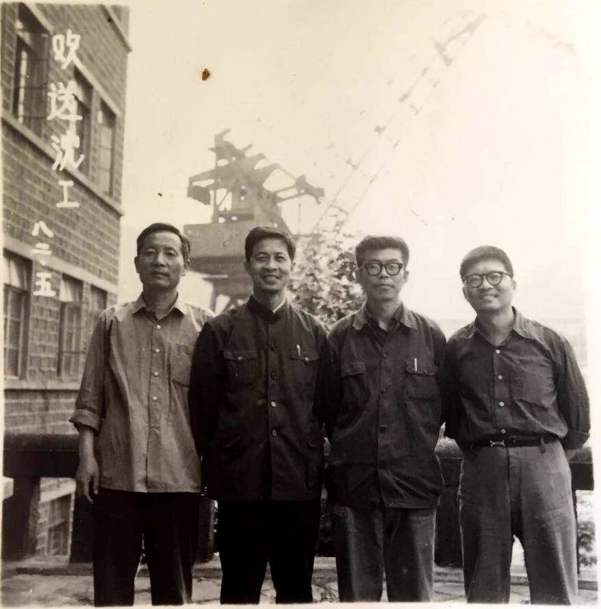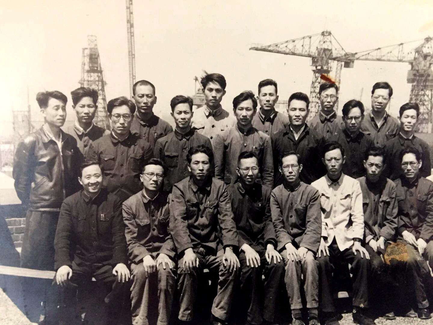 20世紀(jì)60年代沈聞孫(二排左三)與同事在造船現(xiàn)場(chǎng)合影