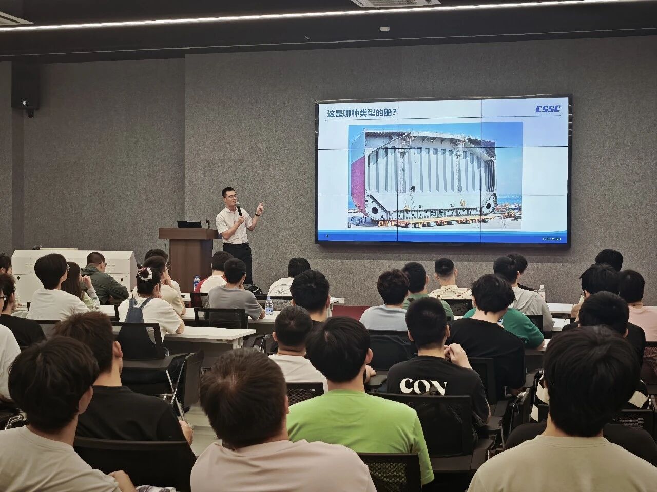 ? 在武漢,武昌造船團委將前沿知識送入高中校園。設(shè)計院博士為新洲一中的學生們帶來“新能源與新能源船舶發(fā)展”講座,從“雙碳”目標到能源迭代,深入淺出的講解為學子們開啟了一段深藍科技之旅。